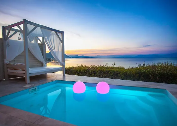 От отеля можно за 5 минут дойти до центра города. Приблизительно в 10 минутах езды от отеля Palms And Spas Villas Retreat находится несколько достопримечательностей, например Paralia Mpoukari. Безопасный для купания пляж находится всего в 650 метрах. На расстоянии 4 км от отеля есть Castle of Gardiki.